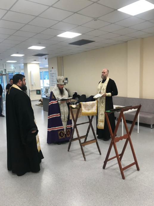 Согласно информации от епархии, после завершения богослужения он передал главному врачу медицинского учреждения икону Пресвятой Богородицы, после чего освятил основные структурные подразделения больницы, включая палаты, операционный блок и приемное отделение.