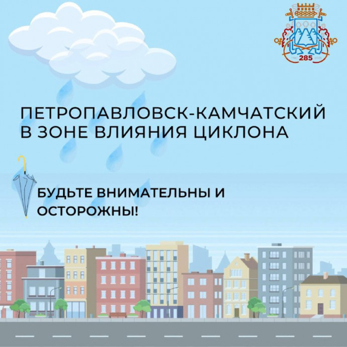Петропавловск-Камчатский находится под влиянием циклона, метеорологическое воздействие которого, как ожидается, продлится в течение всего дня.