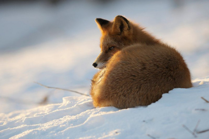 На особо охраняемых природных территориях Камчатки, например, в Кроноцком заповеднике, подобную позу чаще всего можно наблюдать у лисиц. Они принимают форму, максимально приближенную к шару, чтобы отдохнуть, осматривая окрестности, или погрузиться в непродолжительный сон.
