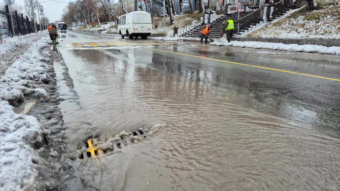 Отмечается, что в районах, традиционно подверженных подтоплениям (район Озерновской косы, спортивного парка «Спартак», нефтебазы в Сероглазке), организовано дежурство техники и бригад для прочистки ливневых решеток, которые систематически забиваются приносимой водой шугой.