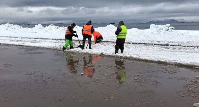 Петропавловск-Камчатский продолжает оставаться под воздействием циклона, сопровождающегося аномально высокими температурами. Это приводит к активному таянию осадков и образованию значительных скоплений воды на дорожном полотне.