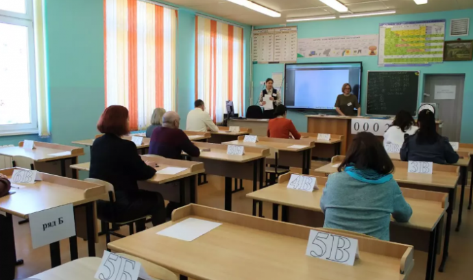 В школе № 33 Петропавловска-Камчатского взрослые поменялись местами со своими детьми и сели за парты, чтобы пройти через процедуру государственного экзамена по русскому языку.
