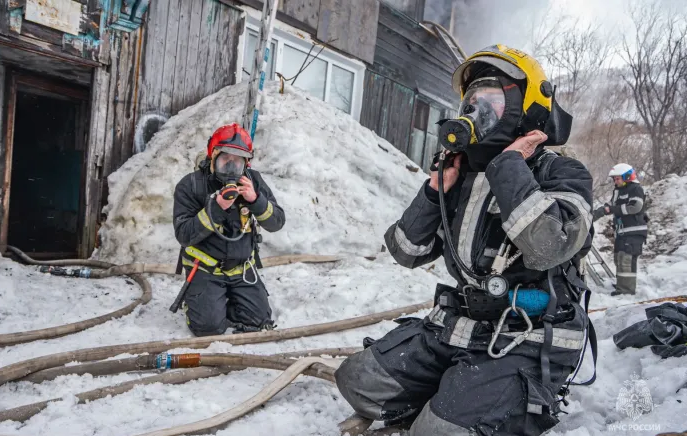 В Петропавловске‑Камчатском спасатели ликвидировали пожар в двухэтажном деревянном доме на улице Тургенева. Сообщение о возгорании поступило 23 марта в 13:04. Пожарные расчёты прибыли на место через шесть минут, однако подъехать к зданию не смогли: проезд оказался завален снегом.