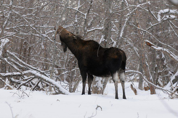 Для лосей глубокий снег создаёт сложности при побеге от хищников, так как их значительная масса приводит к проваливанию. Однако их высокий рост позволяет им без труда добывать корм, объедая ветки деревьев на большой высоте, без необходимости раскапывать кустарники.