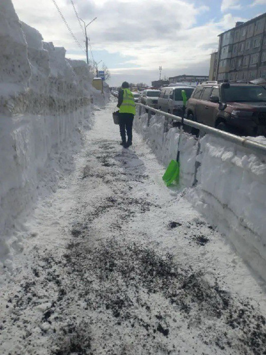 Тротуары приводили в порядок вручную: дорожные рабочие счищали наледь и посыпали пешеходные зоны песко-соляной смесью. В администрации города сообщили, что работы по уборке улиц будут продолжаться в плановом режиме.