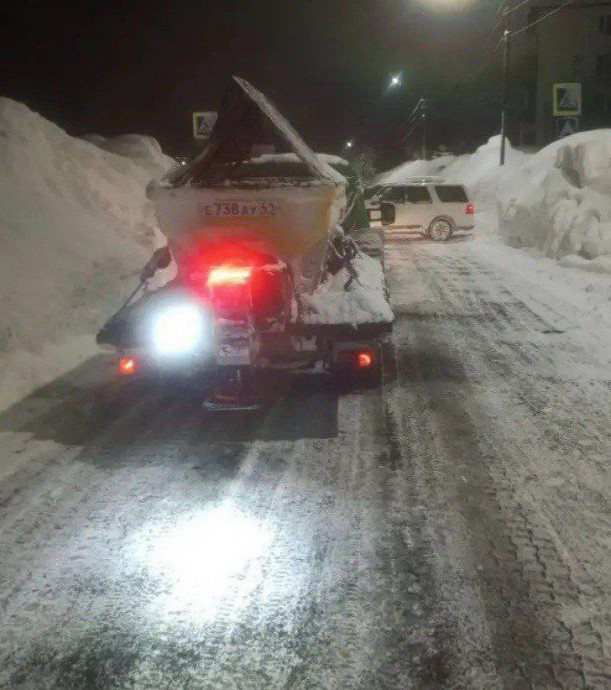 Специализированная техника занята расширением проезжей части, удалением снежных валов и противогололёдной обработкой территорий с применением пескосоляной смеси. Параллельно бригады рабочих вручную очищают от снега автобусные остановки и прилегающие к ним зоны.