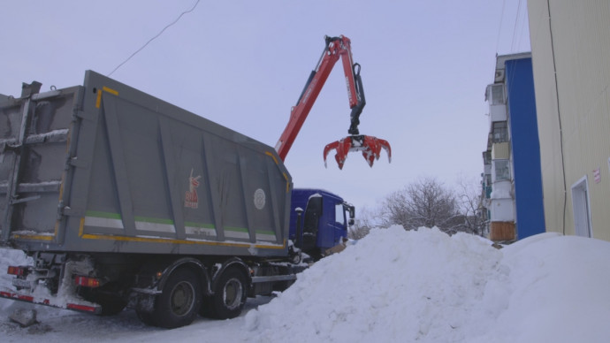 Ломовоз с гидравлическим краном–манипулятором и грейферным захватом вышел на борьбу с мусорными завалами в столице Камчатки