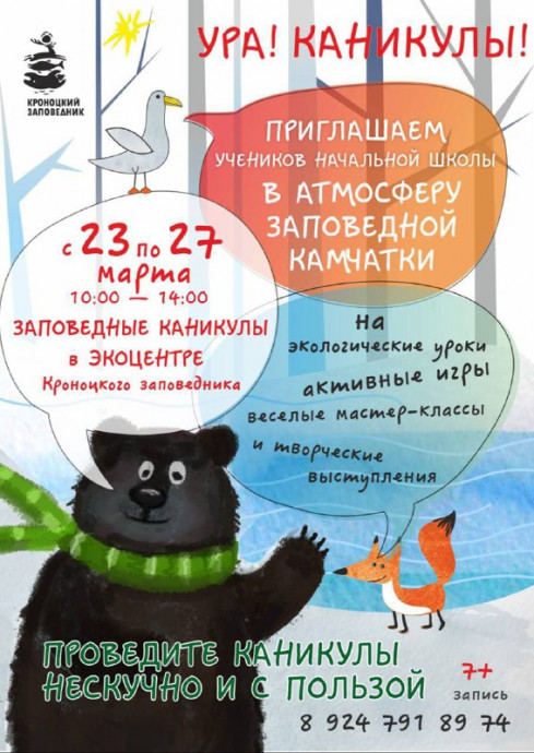 В дни весенних школьных каникул, с 23 по 27 марта, эколого-просветительский центр «Заповедная Камчатка» превратится в площадку для увлекательного знакомства с дикой природой.