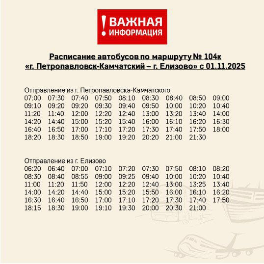 Опубликован новый график движения автобусов № 104 в Петропавловске-Камчатском