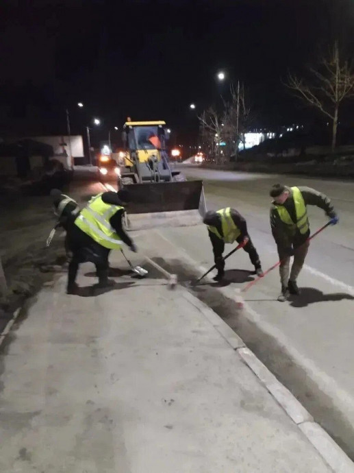 В ночную смену проводилась очистка тротуаров с помощью механизированной щётки, а проезжая часть освобождалась от песка с использованием комбинированной дорожной машины.