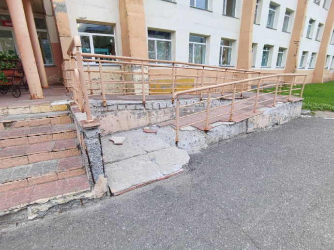 После вмешательства прокуратуры отремонтировали крыльцо и пандус школы в Вилючинске на Камчатке