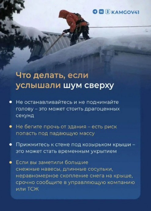 Следует также помнить, что после обильных осадков крыши многоквартирных домов становятся объектами повышенной опасности из-за скопления снежных масс и образования сосулек, что создает угрозу для людей и имущества.