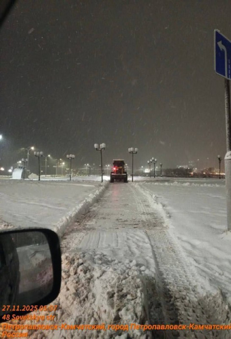 В условиях сохраняющейся непогоды дорожные и коммунальные службы Петропавловска-Камчатского продолжают плановые работы по расчистке города.