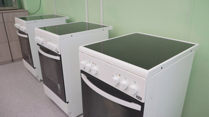 Для занятий по швейному и кулинарному делу были созданы специальные зоны, оснащенные профессиональными швейными машинами, оверлоками, кухонной техникой и полным комплектом посуды для практических работ.