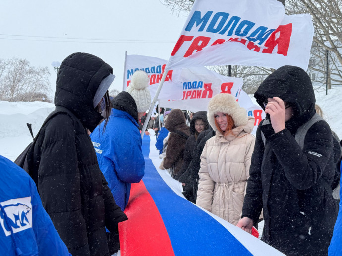 На Камчатке в преддверии Дня защитника Отечества развернули самый большой в регионе флаг России. Мероприятие организовало региональное отделение «Молодой Гвардии Единой России».