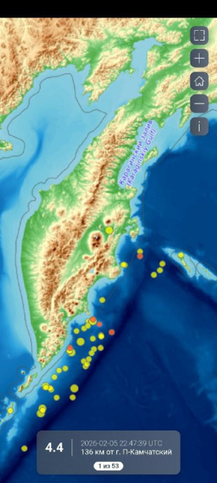 По данным сейсмологического мониторинга на 6 февраля 2026 года, сейсмическая активность в Камчатском крае остаётся повышенной.