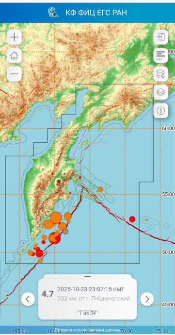 Сейсмическая активность на Камчатке сохраняется на повышенном уровне, о чем свидетельствуют данные мониторинга за период до 24 октября 2025 года.