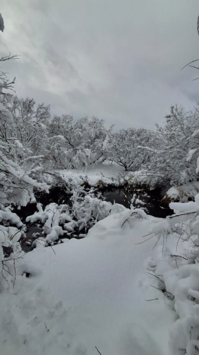 Тяжелый снегопад на заповедных и прилегающих территориях, выпавший при околонулевой температуре, создал двоякую картину. С одной стороны, он основательно засыпал домики инспекторов и хозяйственные постройки, превратив их в подобие елочных игрушек и предопределив значительный объем работ по расчистке кордонов. С другой — подарил уникальный материал для творчества, которым не преминули воспользоваться государственные инспекторы.