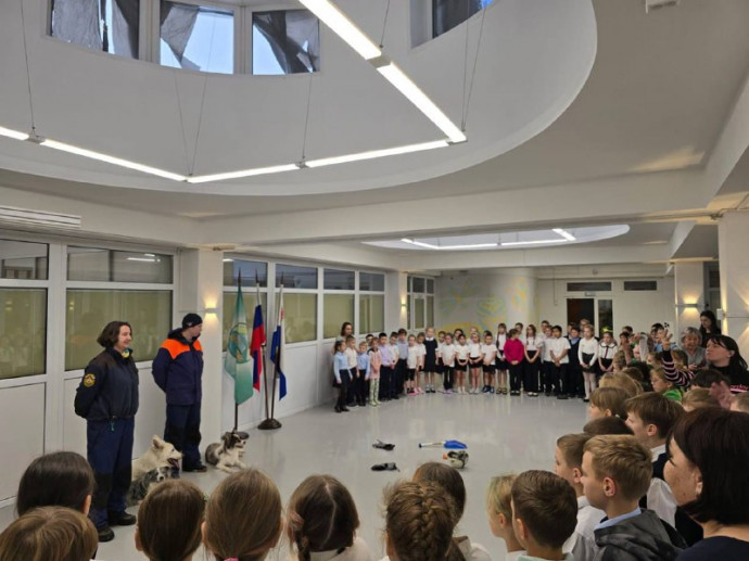 Кинологи поисково-спасательного отряда Главного управления МЧС России по Камчатскому краю провели встречу с учащимися начальных классов в детском образовательном центре Петропавловска-Камчатского.