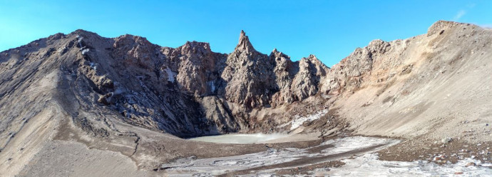 Ученые поднялись к новому куполу вулкана Шивелуч, чтобы изучить лаву и кратерные озера на Камчатке