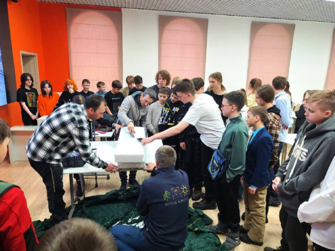 Теоретическая часть плавно перешла в практику. Чтобы лучше понять структуру снежных масс, ребята собрали собственный «снежный пирог», изучая на его слоях различные характеристики снега. Затем участники познакомились с профессиональным спасательным инвентарем. Они не только увидели, как выглядят лавинные биперы (портативные маячки для поиска людей под снегом), но и самостоятельно попробовали искать с их помощью условного пострадавшего.