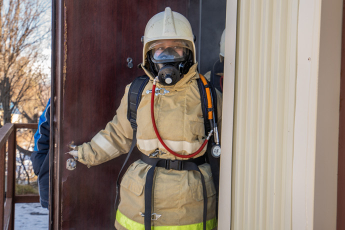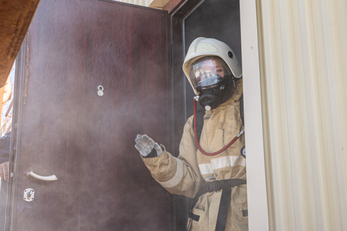 Тренировка проходила в специальной теплодымокамере, где участники смогли на собственном опыте понять, с какими сложностями сталкиваются пожарные во время реальных возгораний.