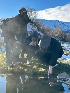 Во второй половине дня программа продолжилась на термальных источниках у села Эссо, где геолог Юрий Анатольевич Василевский провел экскурсию, посвященную геологическим особенностям территории. Юные исследователи самостоятельно измеряли температурные показатели, уровень pH и электропроводность воды в источниках и реке Уксичан.