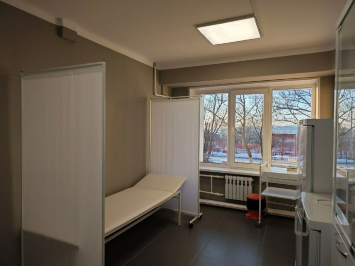 Инфраструктура общежития подверглась комплексной модернизации: были обновлены медицинский кабинет, прачечные, кухонные зоны, санузлы и душевые, комнаты отдыха и самоподготовки, а также фитнес-кабинет.